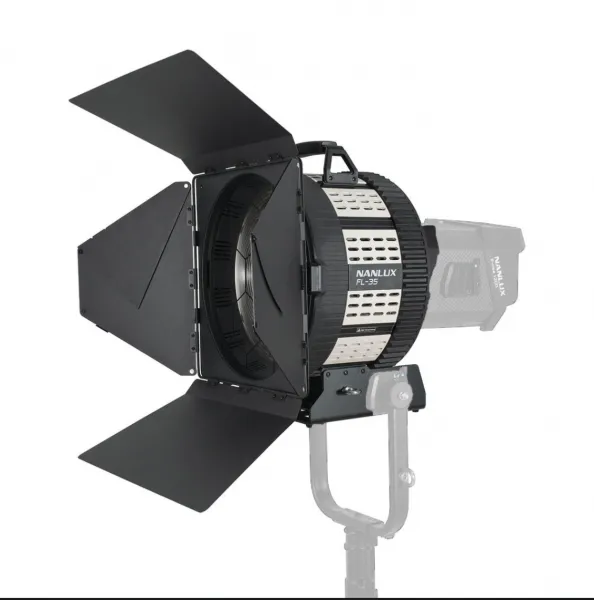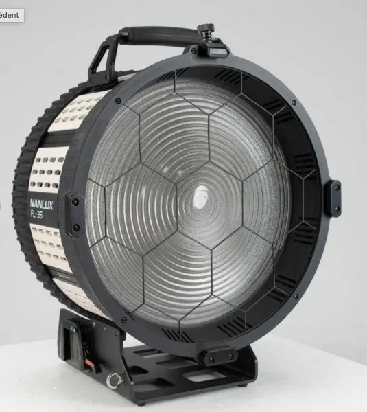 La lentille FL-35 se fixe au support d'accessoires avant du projecteur Nanlux Evoke 1200, pour réduire la diffusion du faisceau lumineux de 45 à 11 °.