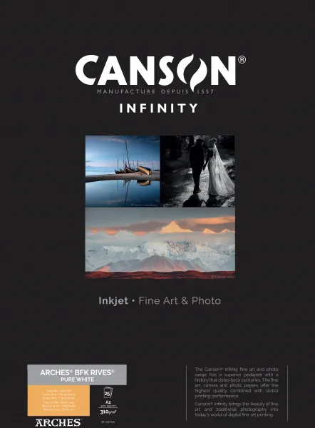 ARCHES® BFK Rives® Pure White est un prestigieux papier d'impression d'art qui offre aux photographes, aux artistes et aux imprimeurs, la possibilité de créer des impressions digitales de qualité beaux-arts sur un authentique papier ARCHES® pour des éditions limitées ou classiques.