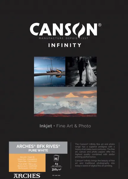ARCHES® BFK Rives® Pure White est un prestigieux papier d'impression d'art qui offre aux photographes, aux artistes et aux imprimeurs, la possibilité de créer des impressions digitales de qualité beaux-arts sur un authentique papier ARCHES® pour des éditions limitées ou classiques.