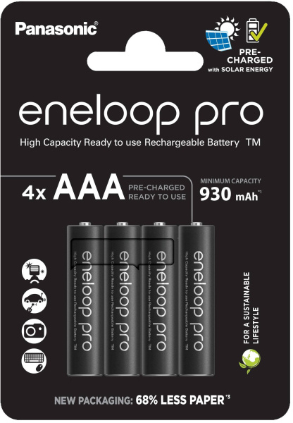 Les piles Eneloop Pro sont le choix idéal pour alimenter des appareils à forte consommation de courant tels que les lampes flash stroboscopiques, les claviers sans fil, les souris, les manettes de jeu, les jouets radiocommandés et toute une série d'appareils ménagers. Ils peuvent tous atteindre des performances étendues lorsqu'ils sont alimentés par des piles eneloop pro.