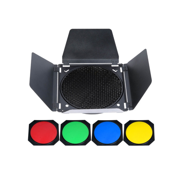 Kit coupe-flux noir mat + 4 filtres colorés + grille nid d'abeille pour réflecteur Ø 18 cm [AD-R6]