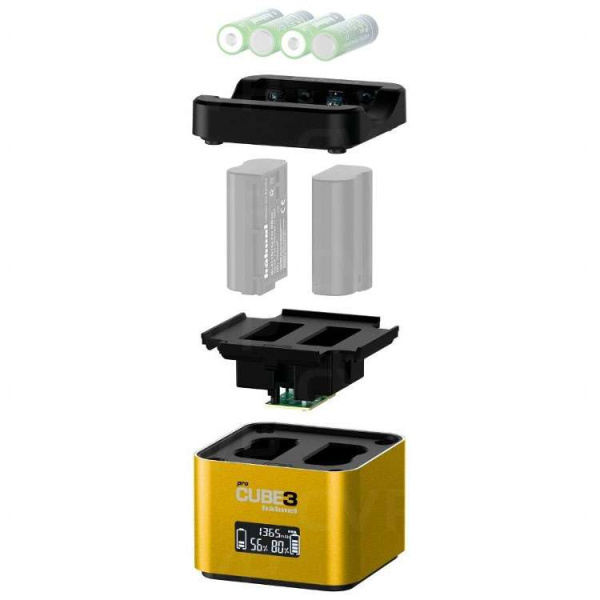 Le chargeur ProCube 3 est le compagnon idéal de vos batteries Nikon, grâce à sa capacité de charge en 2 voies simultanées. Il dispose également d’un plateau pour recharger 4 piles AA et même vos smartphones et tablettes via son port USB.