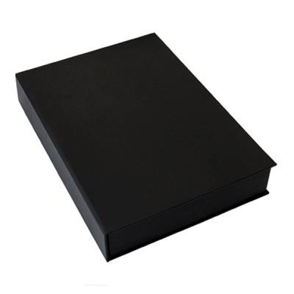 Boîte de présentation PRESTIGE noire sur cadre en bois de hêtre, format 22 x 31cm, non traité sans acide.