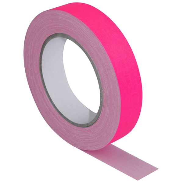 Gaffer toilé tissé rose fluorescent PRO Haute Qualité bande de 25mm sur une longueur de 25 mètres.