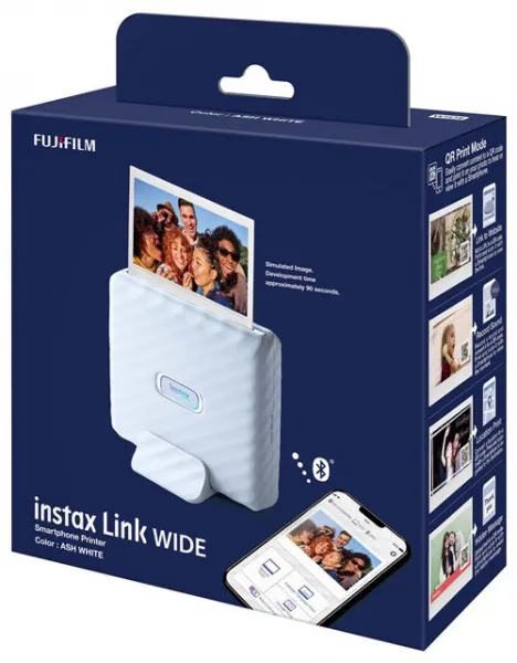 L’imprimante instax link wide produit des impressions instantanées instax de grand format et de haute qualité à partir de photos prises à l'aide d'un smartphone grâce à l’application gratuite dédiée instax link wide.