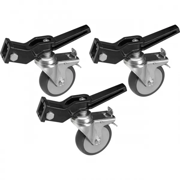 Jeu de 3 roulettes avec freins, pour pied Avenger à jambes section carré