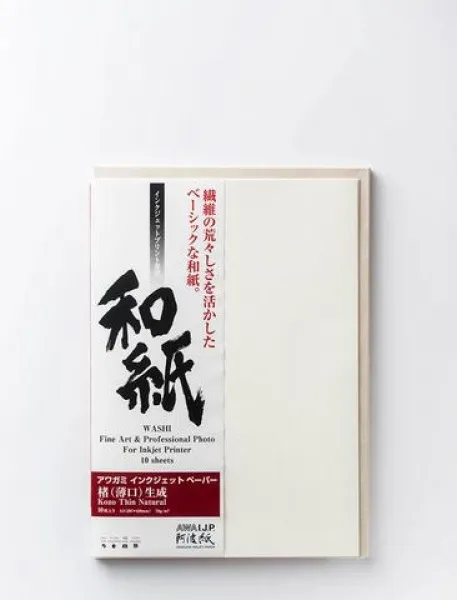 Kozo fin naturel 70 g/m² A2 10f: Le papier Awagami Kozo (« mûrier » en japonais) est fabriqué avec des fibres de mûrier de la région de Tokushima, il est connu pour sa résistance et sa durabilité. Ce papier exceptionnel a un aspect souple et solide ce qui permet d’éviter les plis.