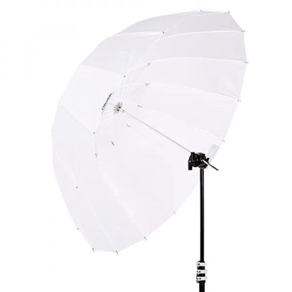 Tous les parapluies Deep Profoto ont une forme parabolique plus profonde que les parapluies ordinaires. Plus la forme est profonde, plus vous aurez de contrôle sur le faisceau de lumière. Il vous permet également de focaliser et de façonner la lumière en faisant simplement glisser la tige du parapluie sur son support, en avant ou en arrière. Les parapluies translucides permettent d’envoyer la lumière à travers. Ils la diffusent et l’adoucissent en diminuant le contraste. Les parapluies translucides sont parfaits pour créer une lumière douce lorsque vous êtes très près de votre sujet.
