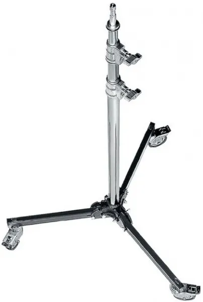 Ce pied roller Avenger, à 3 sections et 2 montants, possède des jambes en acier, ainsi qu'une colonne et des jambes en aluminium. Il peut supporter une charge maximale de 12 kg et atteindre une hauteur maximale de 1,70 m. Il possède des roues pour un transport facile et ses jambes se replient pour un rangement plus simple.