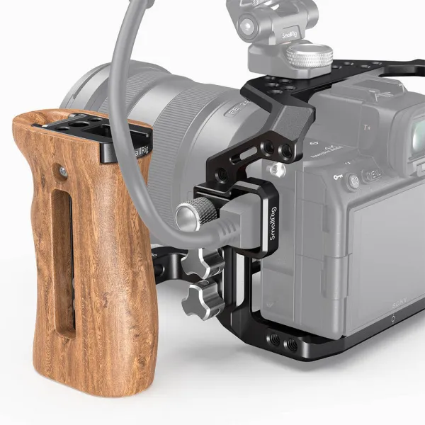 Le kit professionnel SmallRig pour Sony Alpha 7S III A7S III A7S3 3008 comprend une cage complète en aluminium, une pince pour câble HDMI et une poignée latérale en bois.