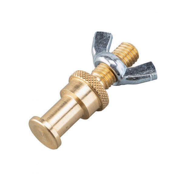 Equipé d’un pas de vis M10 avec écrou papillon, ce spigot est d’une grande polyvalence. Avec son connecteur femelle 5/8'' il se fixe sur de nombreux équipement, comme une pince Super Clamp. Il est fabriqué en laiton pour être durable et léger. Grâce à ce spigot, vous pouvez fixer votre appareil photo ou des accessoires partout où vous le souhaitez.