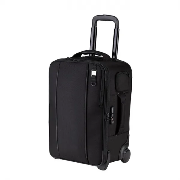 Comprend le module d'objectif amovible exclusif de Tenba, une pochette arrière pour batterie mobile et un support pour trépied à accès rapide, ainsi qu'un câble de sécurité en acier, des fermetures éclair intégrées, des poignées garnies de cuir et des roues amortissantes.